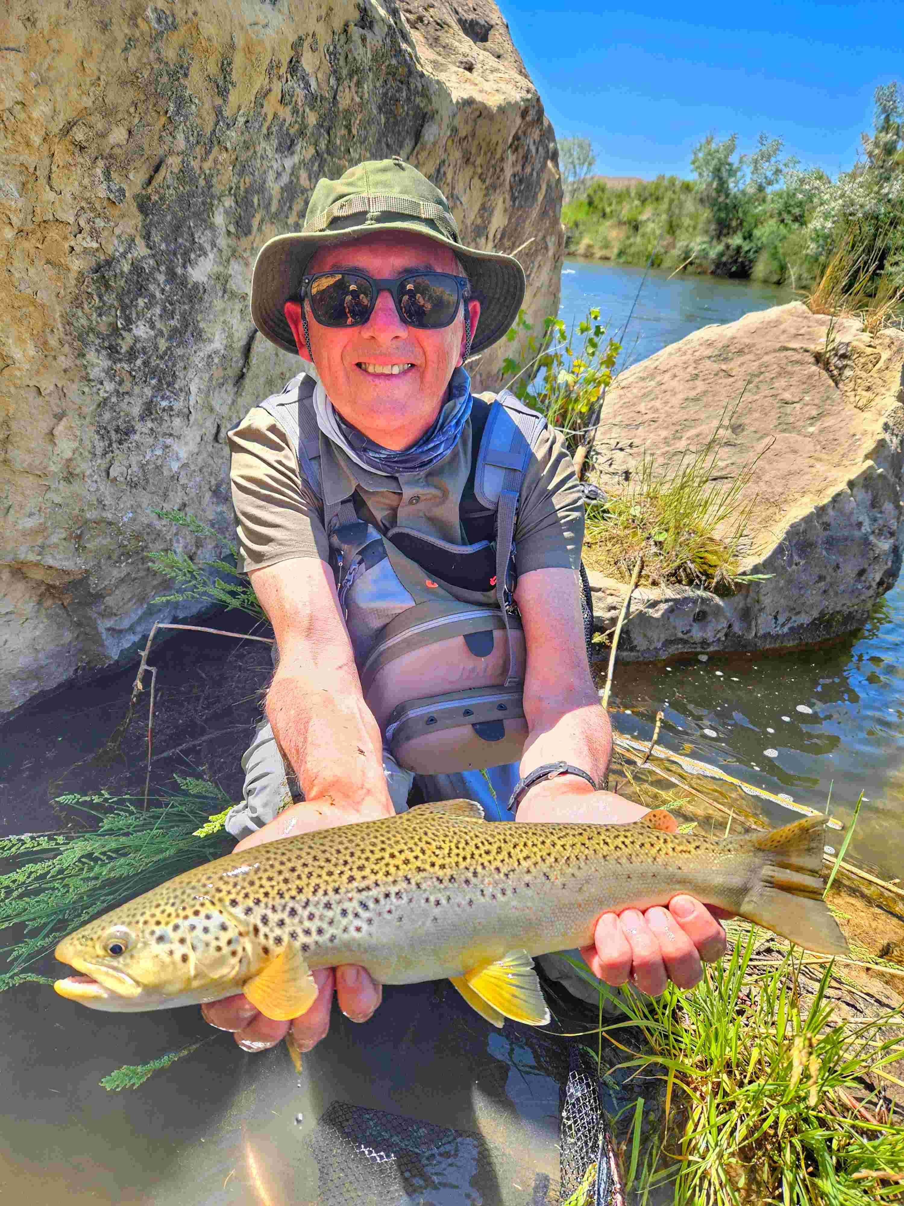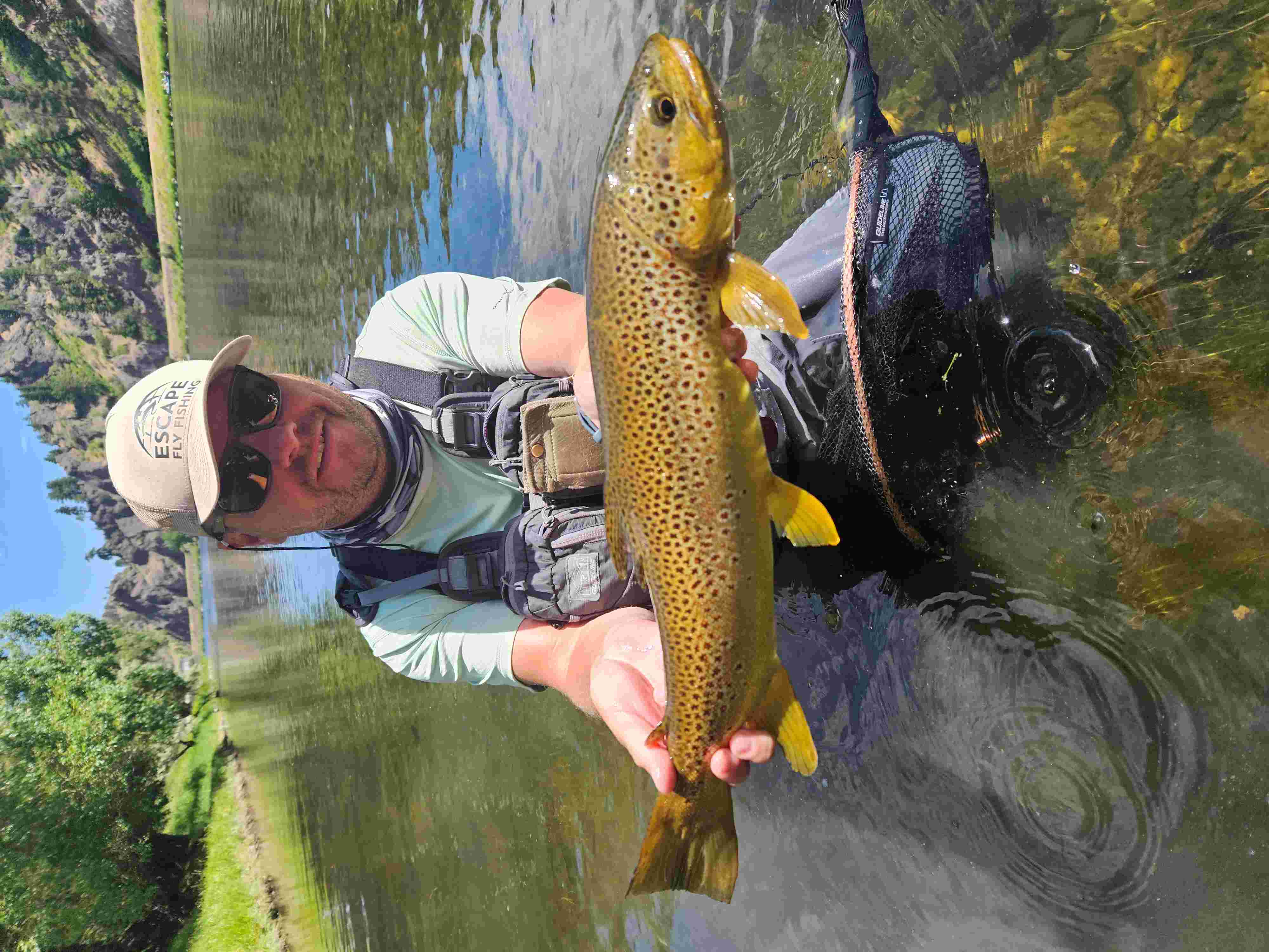 Pêcheur ayant déjà beaucoup voyagé (heureux retraité avant la réforme...) et dans des coins mythiques (Nouvelle-Zélande, Scandinavie, Patagonie, etc.), je suis allé tester le rêve américain. Et je n'ai pas été déçu : des truites partout, des gobages comme des ronds de lessiveuse, des paysages superbes... Bref, j'y retourne pour la 3ème fois !!! L'avantage avec l'organisation d'Eddie, c'est une ambiance cool, une adaptation aux conditions journalières de pêche, une assistance halieutique efficace, un hébergement confortable... Cerise sur le gâteau (enfin le donut), c'est que tous les types de pêche à la mouche sont possibles durant le séjour ; sèche, nymphes, noyée, streamer. Et comme il y a des Fly-shops partout, en cas de petits problèmes (choix de mouches, petit matériel, fringues...) on peut être dépanné facilement et rapidement. Un séjour inoubliable dans une vie de pêcheur.